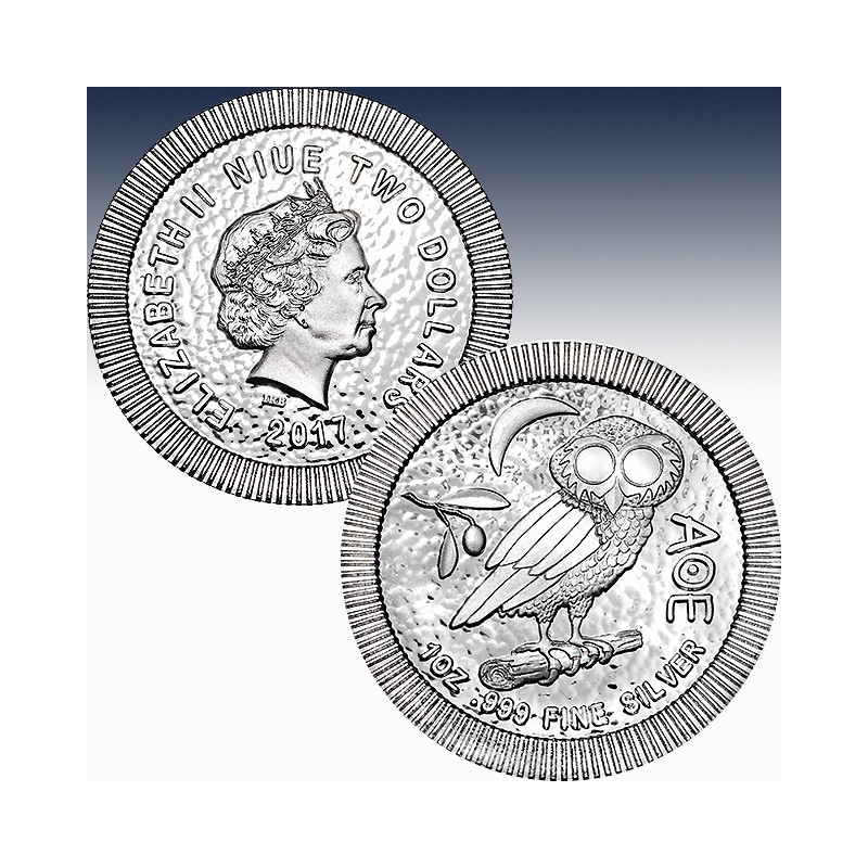 1 x 1 Unze (oz) Silbermünze 2$ Niue Islands "Eule von Athen 2017"