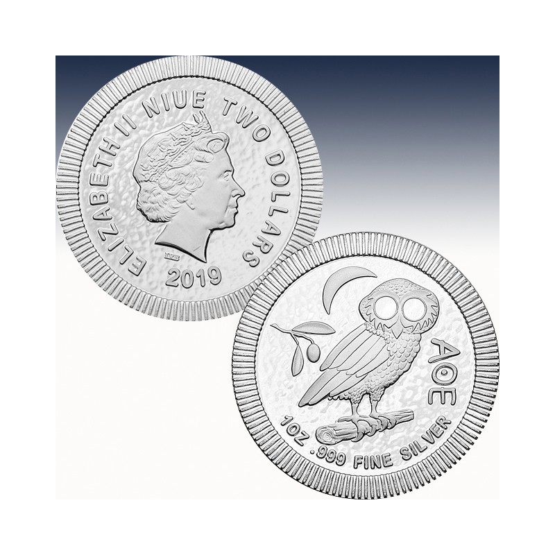 1 x 1 Unze (oz) Silbermünze 2$ Niue Islands "Eule von Athen 2019"