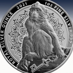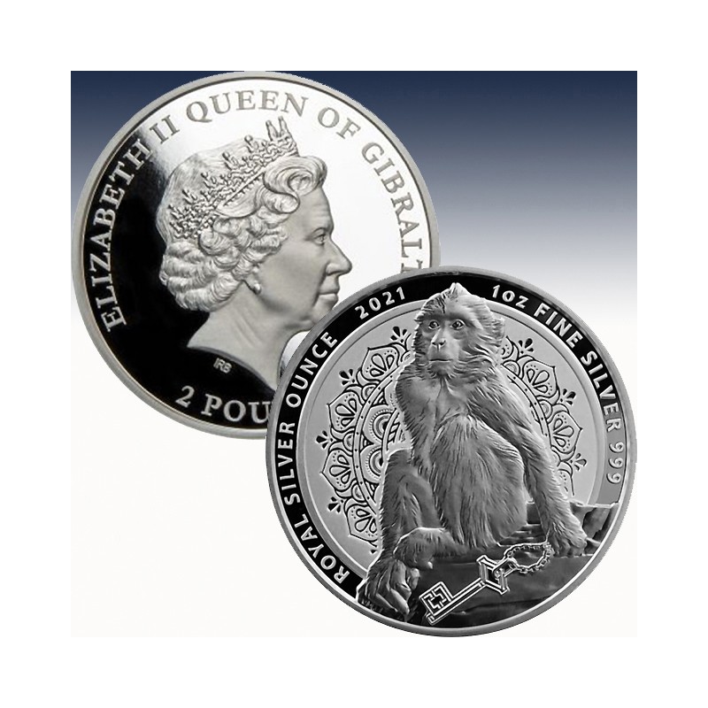 1 x 1 Unze (oz) Silbermünze 2 Pounds Gibraltar "Berberaffe 2021"