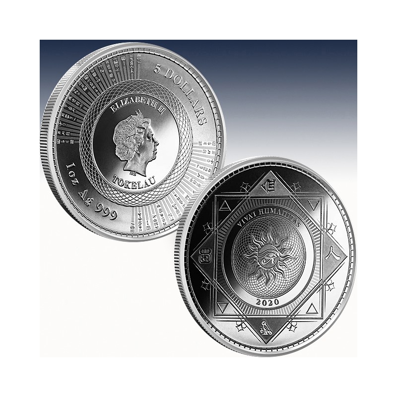 You will find four important symbols of humanity and human civilizations on the reverse of 2020 Tokelau Vivat Humanitas Silver Coins. These symbols include ki, or Earth, from the Sumerian Cuneiform. The inscription of Vivat Humanitas is also on this side and is Latin for long live humanity.