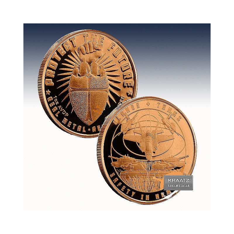 Jede dieser wunderschönen Copperround enthält 999/1000 Feinkupfer und wurde im feinsten "Brilliant uncirculated" geprägt.