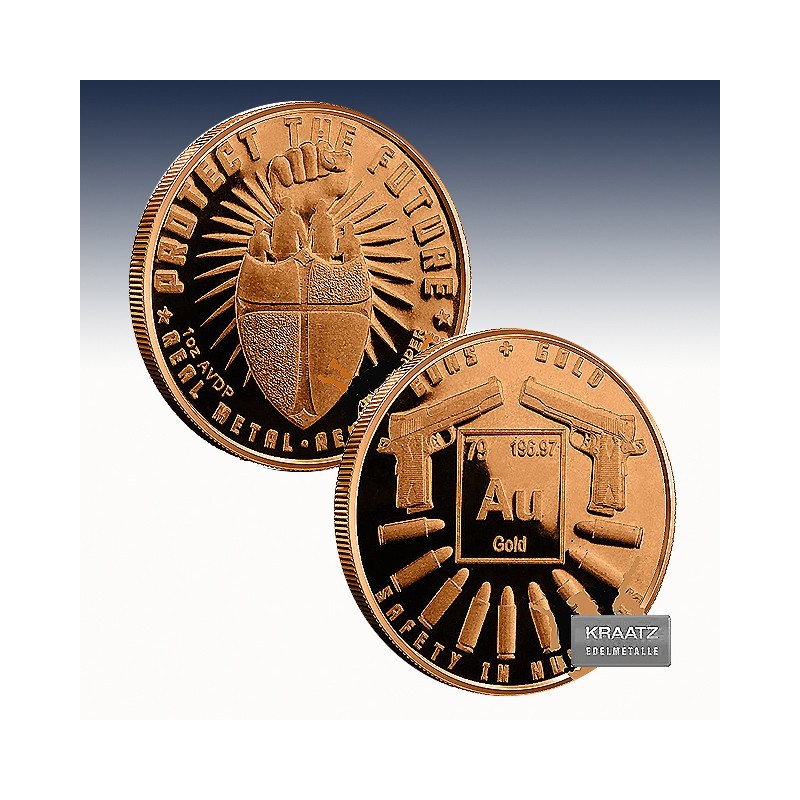 1 x 1 Unze (oz) Copper Round "Guns and Gold"