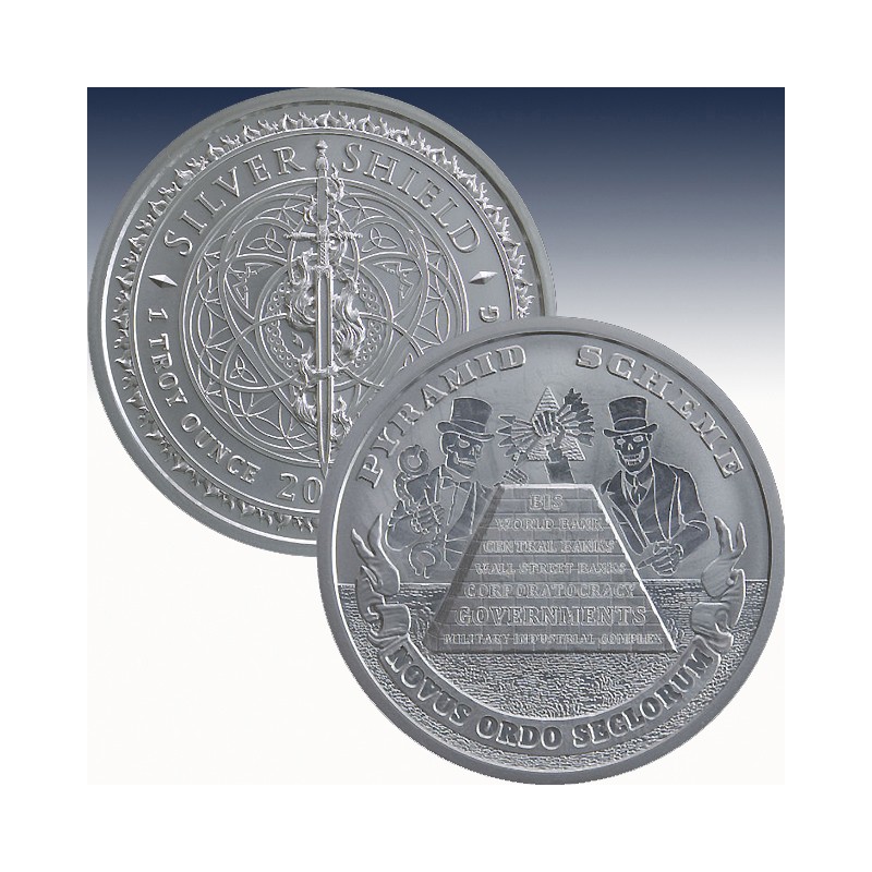 The 2019 Silver Shield Pyramid Scheme shows for the first time ever, struck into silver, the truth behind schemes.