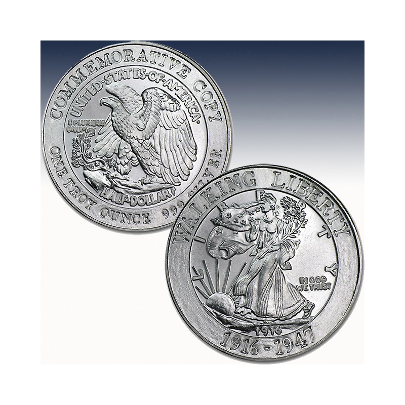 This 1 oz Silver round takes its design from one of the most recognized coins in American history, the 1916 Walking Liberty Half Dollar, and is a popular item to add to any investment portfolio or numismatic collection.