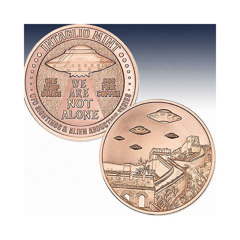UFOs Over the Great Wall – 1 AVDP Oz .999 Fine Copper Round | UFO Sightings & Alien Abduction Series