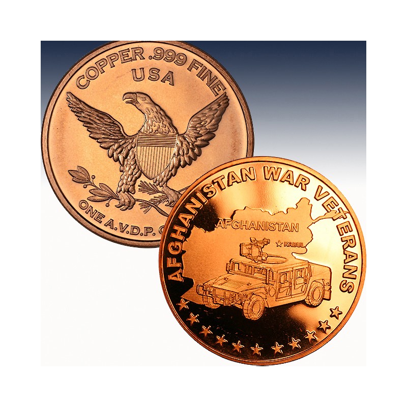1 x 1 Unze (oz) Copper Round Privat Mint "Afghanistan War Veterans"