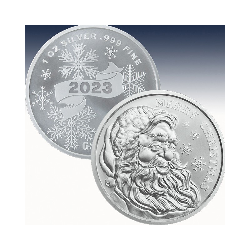 1 x 1 Unze (oz) Silver Round Golden State Mint "Merry Christmas Santa 2023"