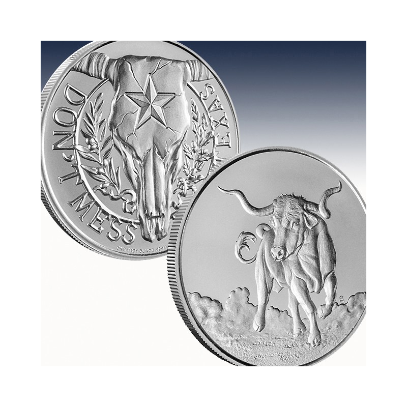 A symbol of Texas pride and hope, the Longhorn ranks high on every list of Lone Star iconography. This breed of cattle is also featured on a new round from Intaglio Mint as part of the popular Don’t Mess with Texas Series. Struck in pure silver, these rounds are the perfect memento for Lone Star aficionados. Right now, 1 oz Don’t Mess with Texas Longhorn Silver Rounds are available to purchase online from JM Bullion.
