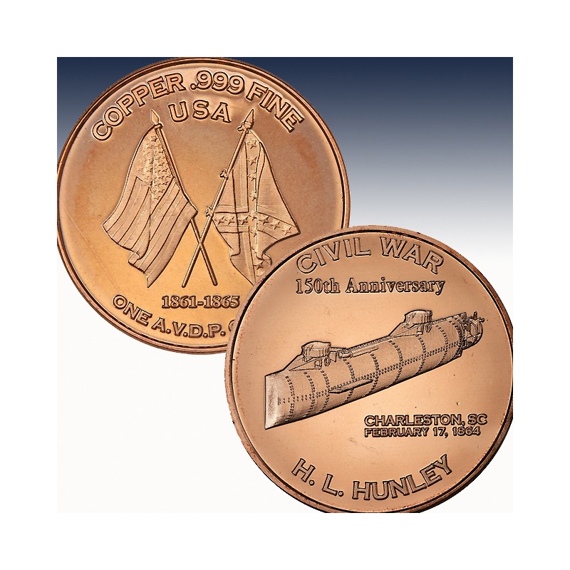 1 x 1 Unze (oz) Copper Round Private Mint "150th Anniv. Civil War Hunley"
