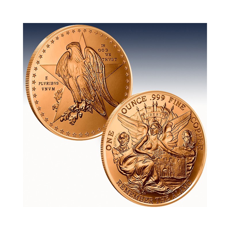 The Texas Centennial Commemorative Half Dollars of 1934-1938 are prized collectibles and can sell for substantial sums of money. High-grade examples have sold for $15,000 or more at auction! Now, this iconic design is available as a new copper round. Provident is excited to offer a new line of Texas copper rounds featuring the stunning motif of the 1934-1938 Texas commemorative Half Dollar. The design has been masterfully recreated; it captures the coins original splendor and highly intricate detail.