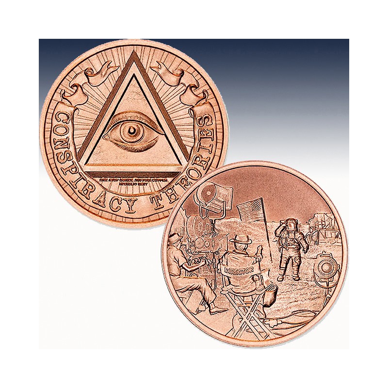 Was the moon landing one of humanity’s greatest achievements or the greatest hoax of all time? With our Moon Landing .999 Fine Copper Round, part of the exclusive Conspiracy Theory Series, you decide.