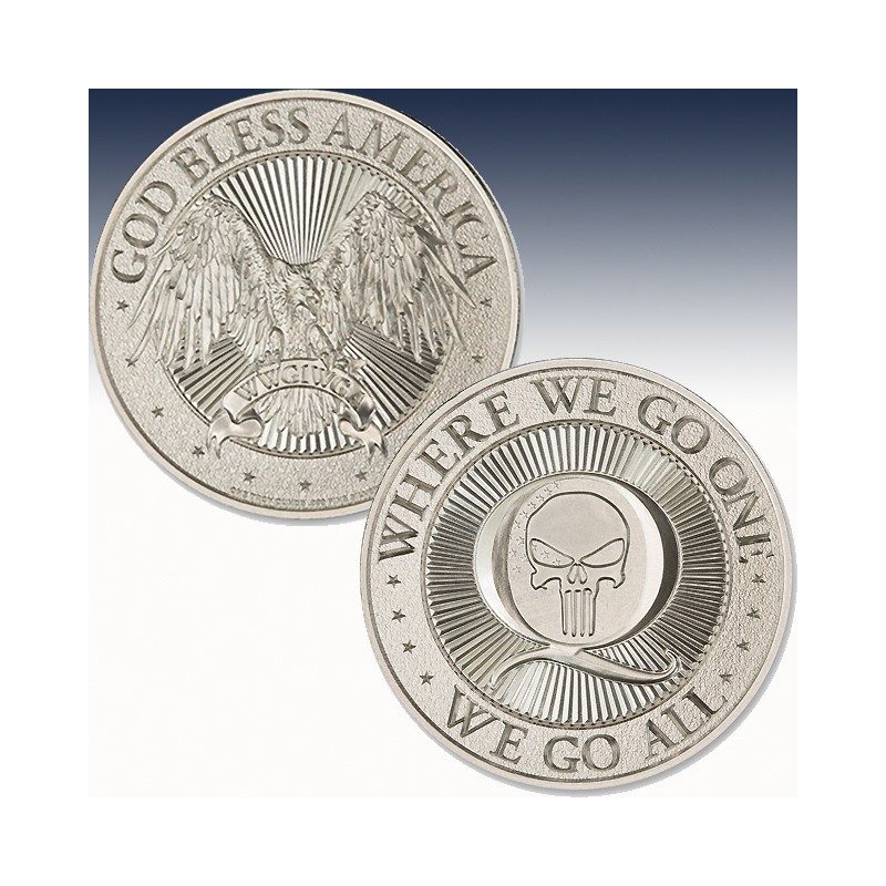 Whether it’s an elaborate conspiracy theory, or a covert hero plotting and planning to take down the “Deep State,” the QANON phenomenon has sparked controversy and intrigue depending on which side of the aisle you reside. This QANON round containing 1 Troy Ounce of .999 Fine Silver, is brought to you by the Private Mint.