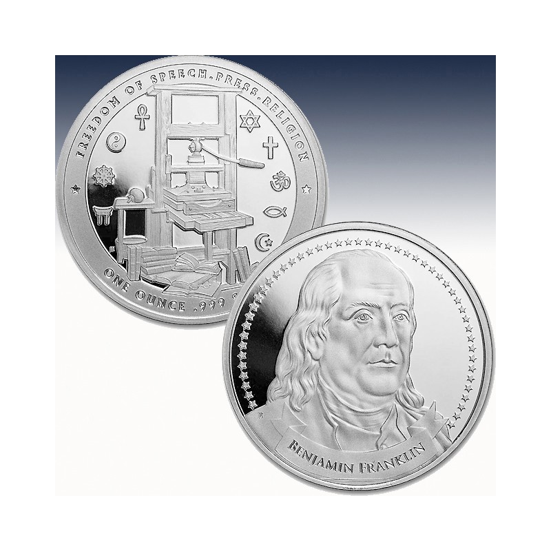 There's a reason freedom of speech, press and religion are expressed within the First Amendment of the U.S. Bill of Rights to the Constitution. Benjamin Franklin compared freedom of speech to freedom of thought and it is from this ability to reason and conceive ideas that all other freedoms derive. It is therefore fitting that the first round in the Founders of Liberty series is a celebration of the ideas prominently featured in the First Amendment along with one of America's most prolific thinkers and founding fathers, Benjamin Franklin.