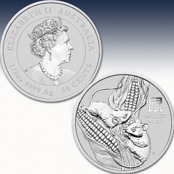 1 x 1/2 Unze (oz) Silbermünze 0,5$ Australien Lunar 3