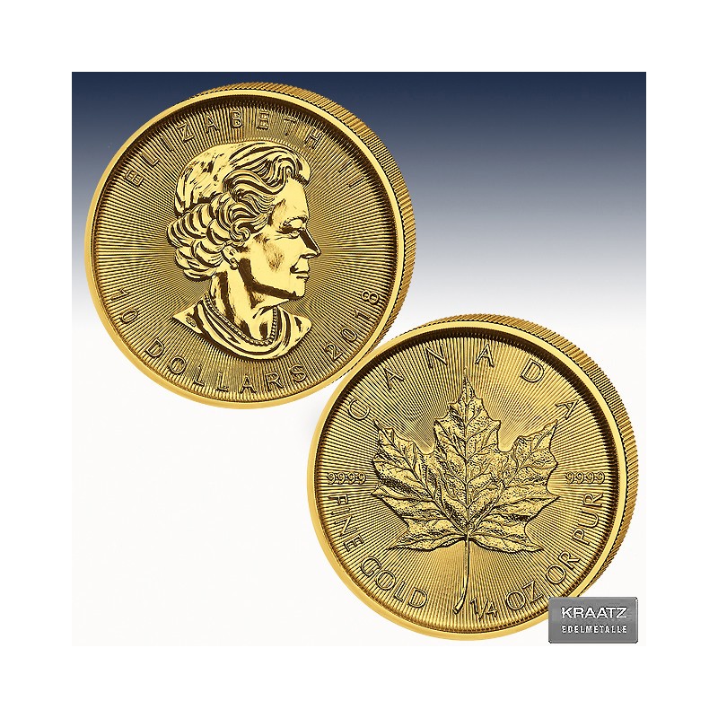 Wie bereits erwähnt, ist der Maple Leaf 1/4 Unze sowohl in Gold wie auch in Silber erhältlich.