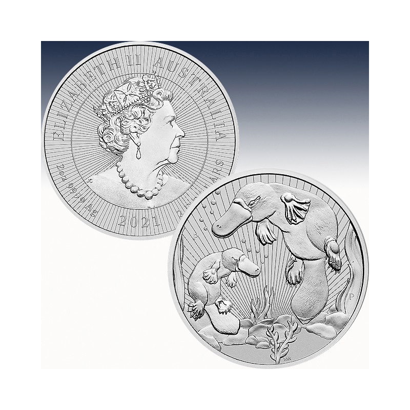Each release of the Next Generation coins features a mother & baby from an Australian Outback species. In addition, each coin includes the enhanced security feature of micro-engraved radial lines, that can be viewed with a magnifying glass. All coins in the series are struck as Piedfort coins, meaning they are the same diameter as Perth's standard round Silver coins of the same weight but are double the thickness. Prior releases of the Next Generation Series have featured Australian animals such as the Kookaburra, Koala, and Crocodile. This 2021 release featuring a mother and baby platypus swimming together is the 4th release of the Next Generation series from Perth.