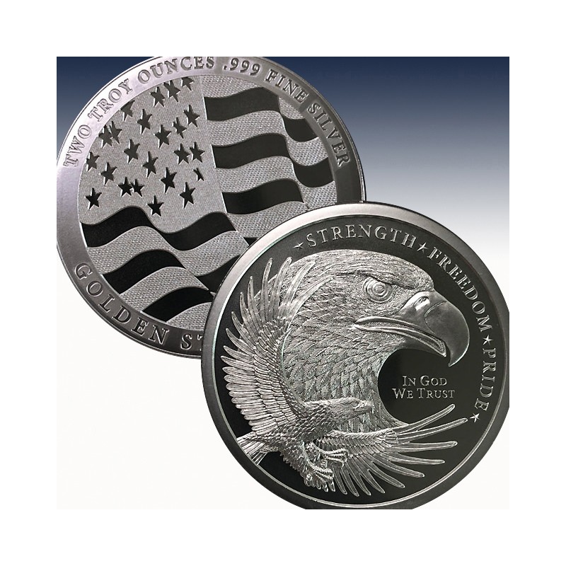 1 x 2 Unze (oz) Silver Round Golden State Mint "Silver Eagle Design"