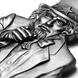 The reverse of 2025 2 oz Silver Uncle Sam Shaped Coins features the most common depiction of the figure. Traditionally, Uncle Sam is depicted with a tall, lean frame, white hair, piercing eyes, and patriotic red, white, and blue costume, including striped pants and a star-adorned top hat, Uncle Sam became an immediately recognizable symbol of American government authority and patriotic duty.