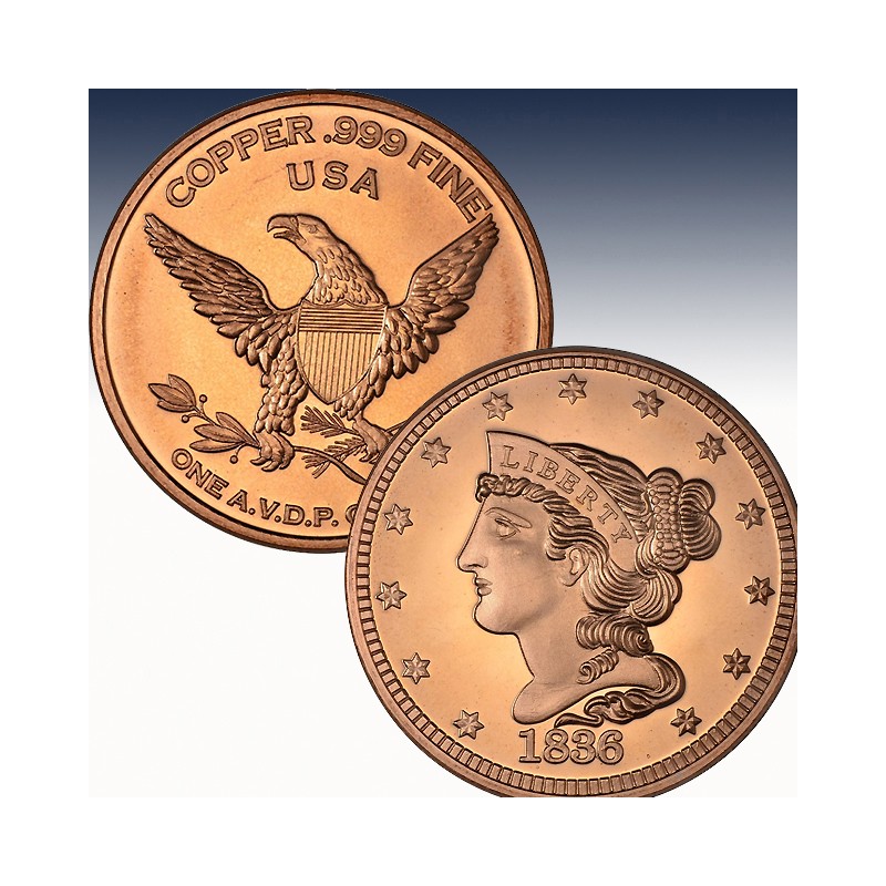 1 x 1 Unze (oz) Copper Round Private Mint "1836 Braided Hair Cent"