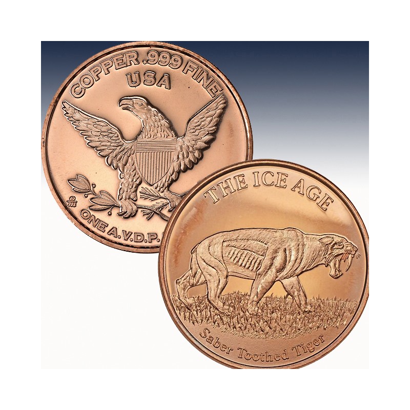 1 x 1 Unze (oz) Copper Round Private Mint "Ice Age - Saber Tooth Tiger"