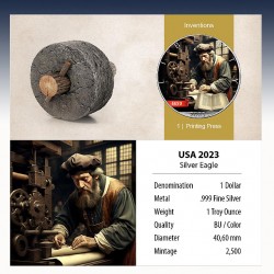 Am unteren Münzrand ist das Ausgabejahr "2023" sowie das Jahr der Erfindung des Buchdrucks "1450" zu sehen.