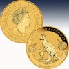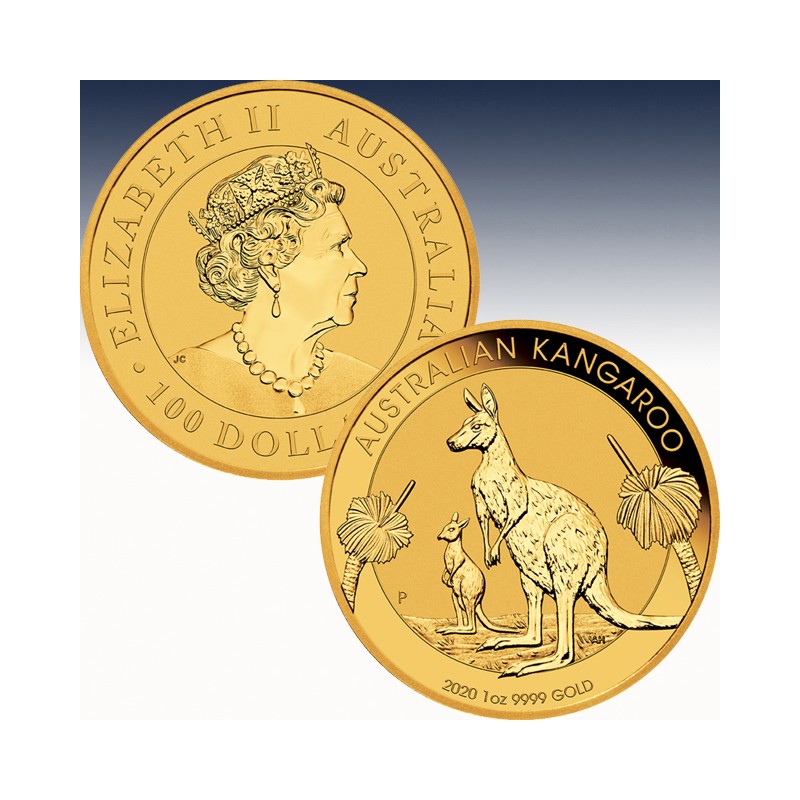 Diese bei Sammlern beliebte, 1 Dollar Gold Kangaroo Münze wurde zum ersten Mal im Jahre 1993 von der Royal Australian Mint geprägt und herausgegeben. Diese 1 Unze aus Gold besticht durch ihr jährlich wechselndes Känguru-Motiv. Erst seit 2008 offiziell als Australian Kangaroo benannt, wird diese seit 1987 von der Perth Mint geprägte australische Münze auch als Nugget bezeichnet. Bis 1989 war auf der Vorderseite ein Nugget und anschließend das australische Känguru abgebildet. Auf Rückseite ist eine Abbildung von Königin Elisabeth II. Der Kangaroo ist in Australien als gesetzliches Zahlungsmittel mit einem Nennwert von 100 AUD zugelassen.