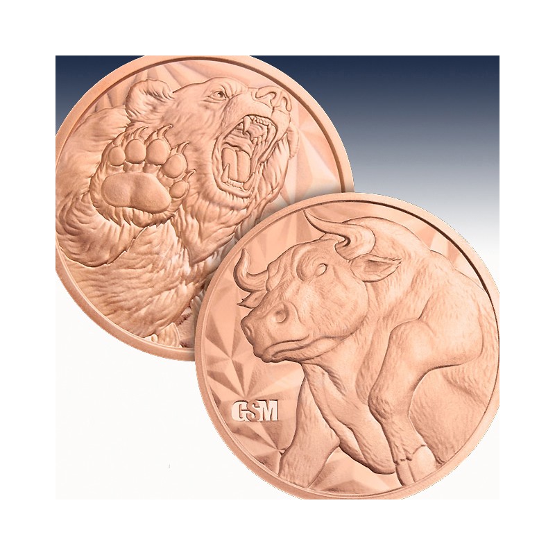 1 x 1 Unze (oz) Copper Round Golden State Mint "Bull & Bear"