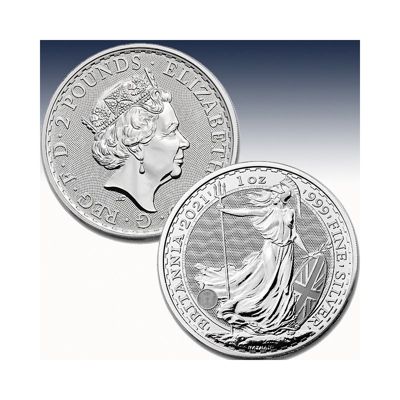 The internationally recognized figure of Britannia standing firm against a ferocious storm is displayed on the Silver Britannia coins. Since Roman times, this image has represented Britain's power and integrity on coinage. In 2021, the design of the coin was enhanced with surface animation, a latent image, tincture lines and micro text to provide further protection. Silver Britannias may be purchased in mint tubes of 25 or sealed 500-coin Monster Boxes alongside single coins.