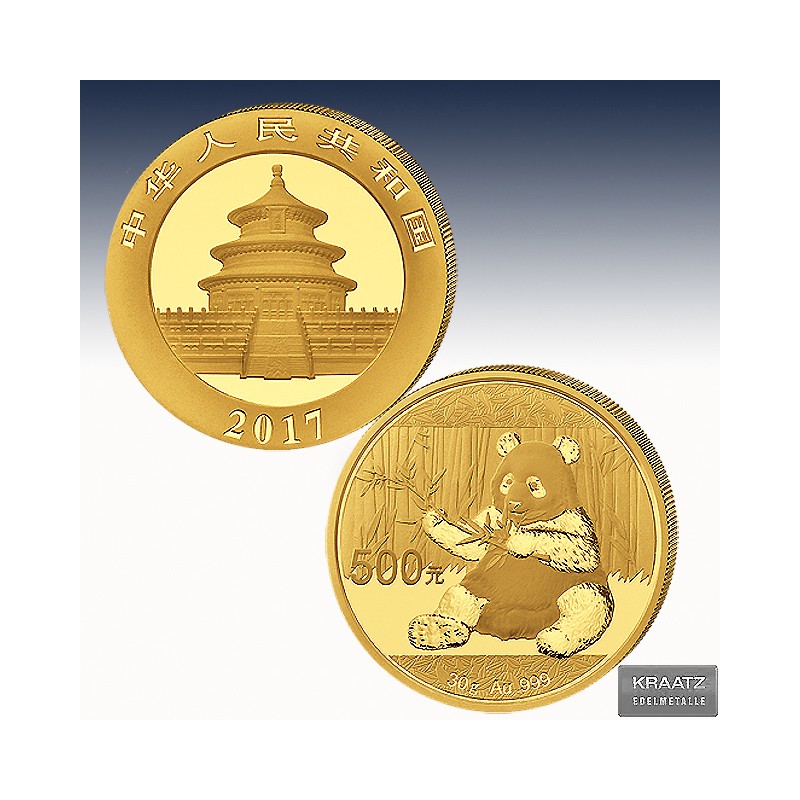 1 x 30 Gramm Gold 500 Yuan "China Panda 2017" -BU-