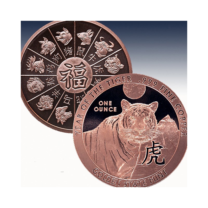 Golden State Mint is excited to bring in the 2022 Chinese Lunar New Year with our freshly minted .999 Copper 1 oz Year of The Tiger Rounds. This celebration, which begins on February 1, 2022, and ends Janurary 21, 2023, is perfectly commemorated with this freshly minted, meticulously designed round from our Chinese Zodiac collection.
