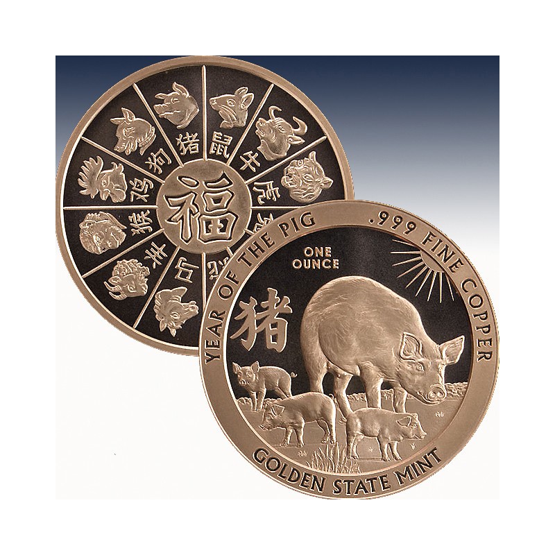 Golden State Mint is helping to bring in the 2019 Chinese Lunar New Year with our freshly minted .999 Copper 1 oz Year of The Pig Rounds. This celebration starts on Tuesday, February 5th and ends on January 24th, 2020, is perfectly commemorated with this freshly minted, meticulously designed round from our Chinese Zodiac collection.