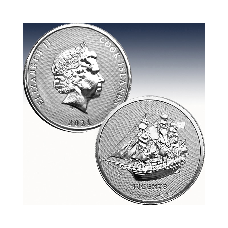 1 x 1 Unze (oz) Silbermünze 10 Cent Cook Islands "Bounty 2021"