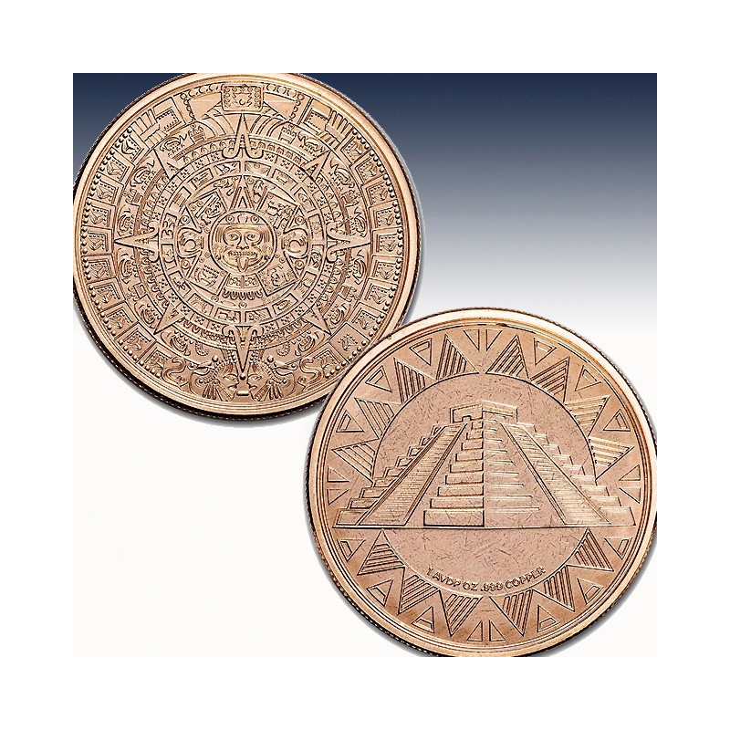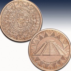 1 x 1 Unze (oz) Copper Round 9Fine Mint "Aztec Calendar and Pyramid"