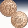 Jede dieser wunderschönen Copperround enthält 999/1000 Feinkupfer und wurde im feinsten "Brilliant uncirculated" geprägt.