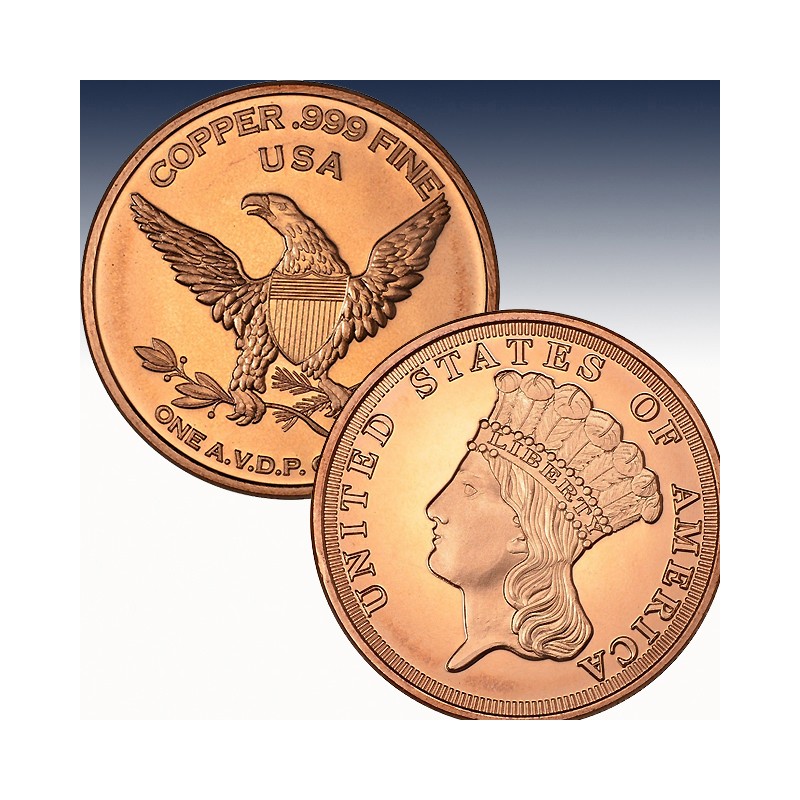 1 x 1 Unze (oz) Copper Round Private Mint "$3 Indian Princess"