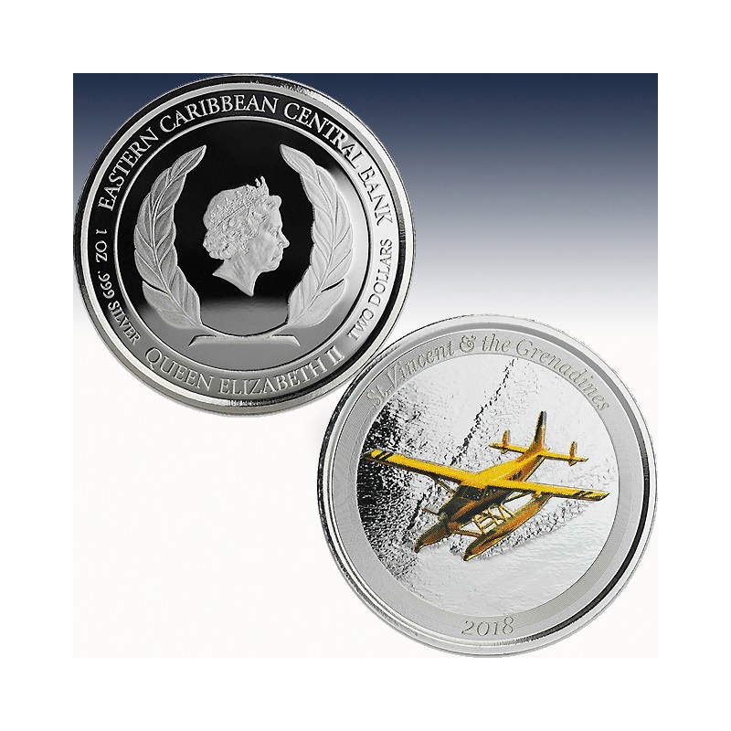 1 x 1 Unze (oz) Silbermünze 2$ St. Vincent & the Grenadines "Seaplane 2018"