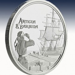 Auch diese Silbermünze gilt als gesetzliches Zahlungsmittel in ihren Herausgeberland Antigua & Barbuda.