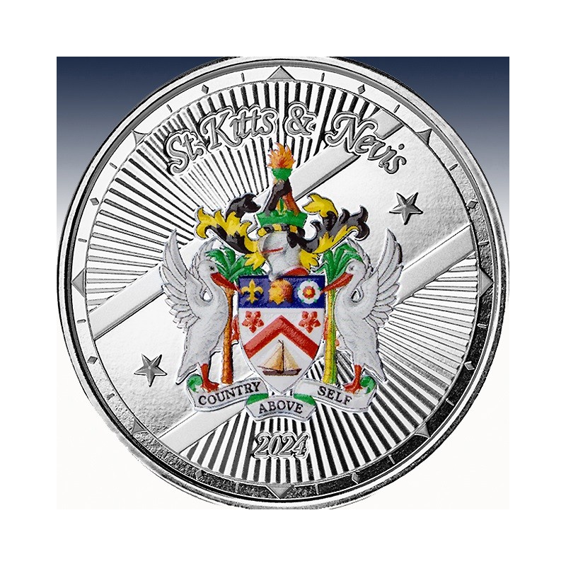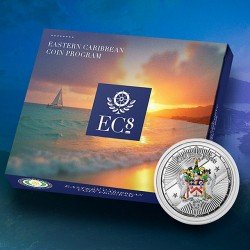Auch diese Silbermünze gilt als gesetzliches Zahlungsmittel in ihren Herausgeberland St.Kitts & Nevis.