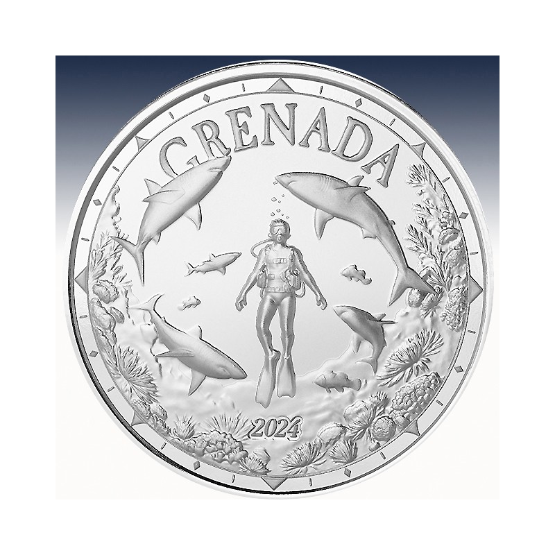 1 x 1 Unze (oz) Silbermünze 2$ Grenada "6# Shark Diver 2024"