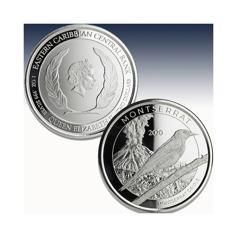 1 x 1 Unze (oz) Silbermünze 2$ Emerald Isle of the Caribbean "Montserrat-Oriole 2020"