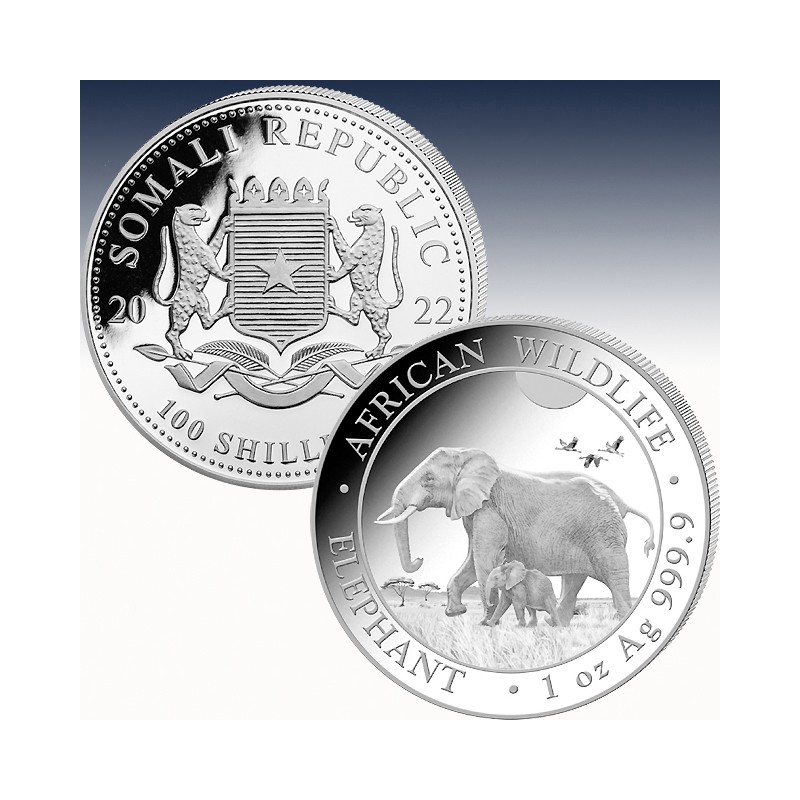 1 x 1 Unze (oz) Silbermünze 100 SH "Somalia Elefant 2022"