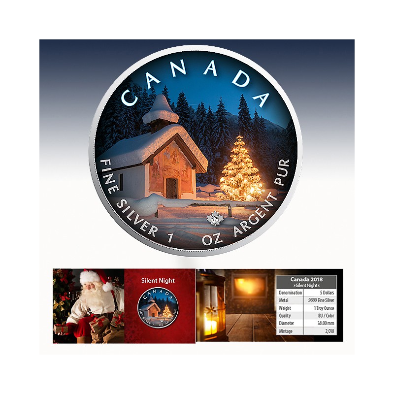 1 x 1 Unze (oz) Silver Coin 5$ Canada "Santa Claus - Silent Night 2018"