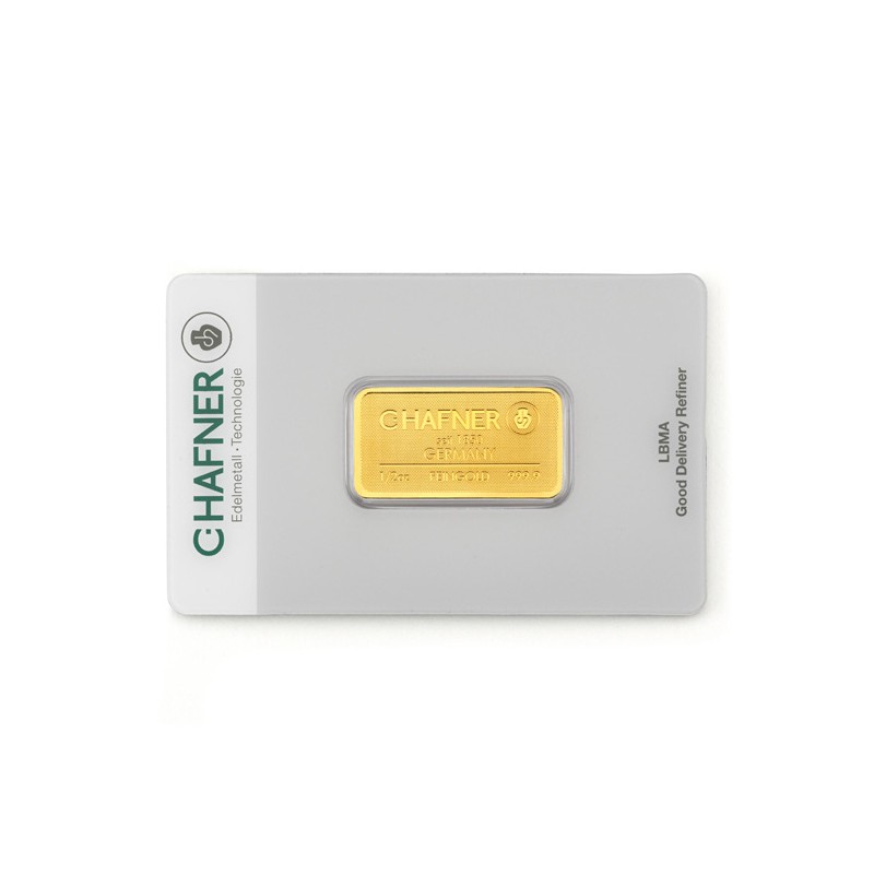 1 x 15,55 Gramm (1/2 oz) Goldbarren C.Hafner (geprägt)