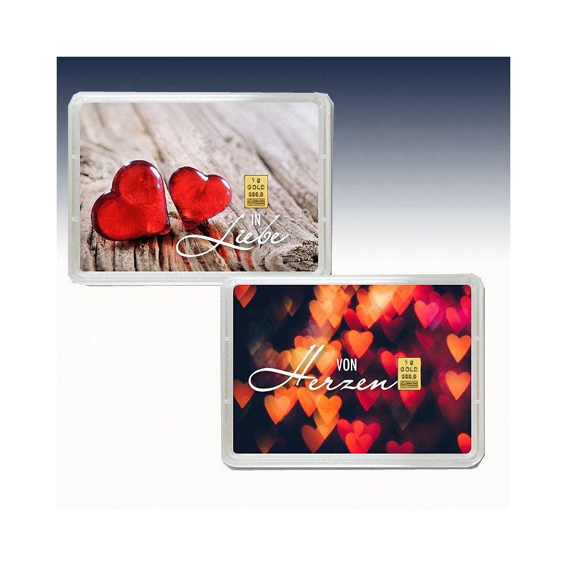 1 Gramm Barren aus Feingold in origineller Geschenkbox mit verschiedenen Motiven zur Auswahl sowie Echtheitszertifikat!