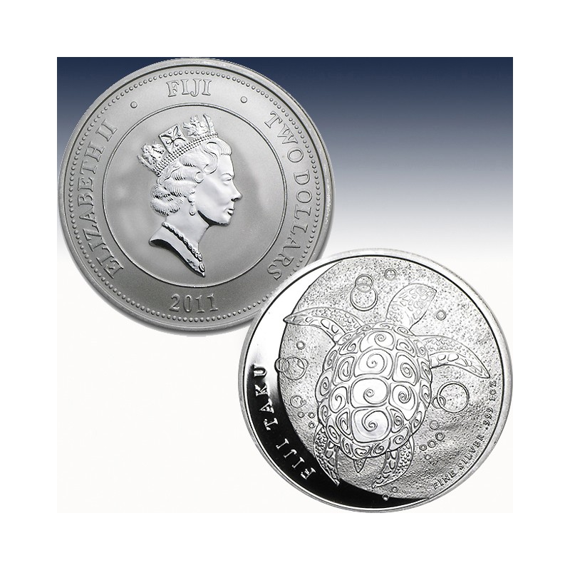 1 x 1 Unze (oz) Silbermünze 1$ Fiji Taku "Schildkröte 2011"