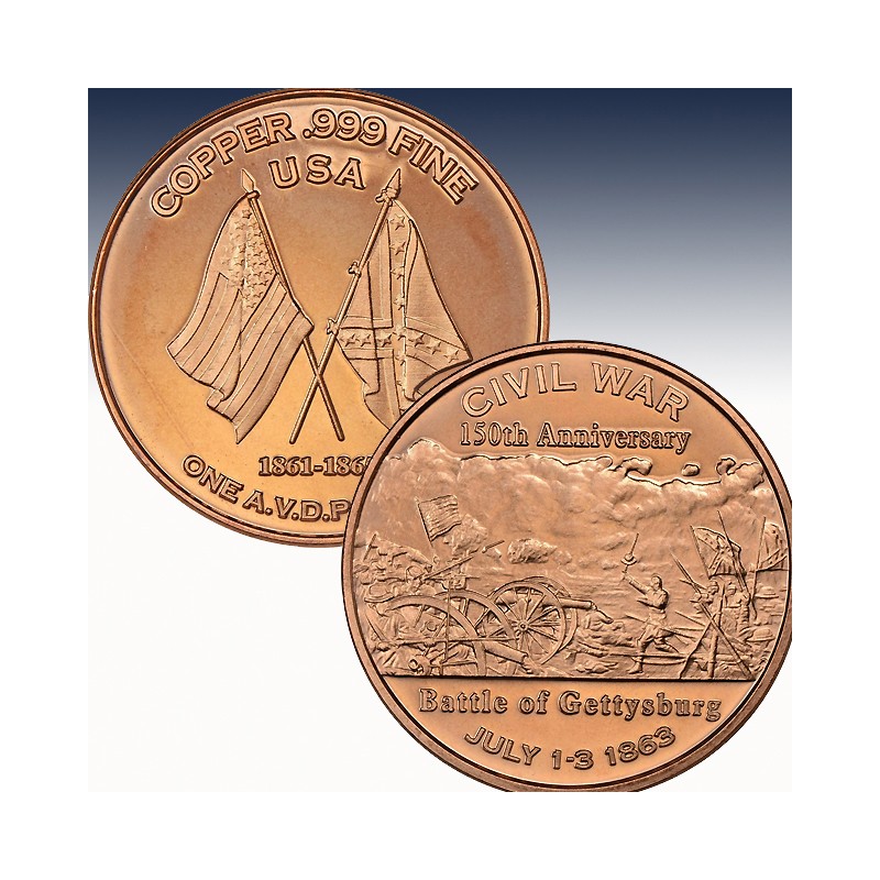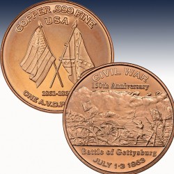 1 x 1 Unze (oz) Copper Round "150th Anniv. Civil War - Gettysburg"