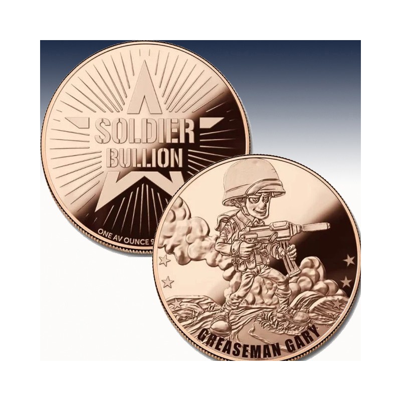 The Greaseman Gary 1 oz Copper Round is a great way to capture the nostalgia of playing with toy soldiers and add some copper to your collection at the same time.