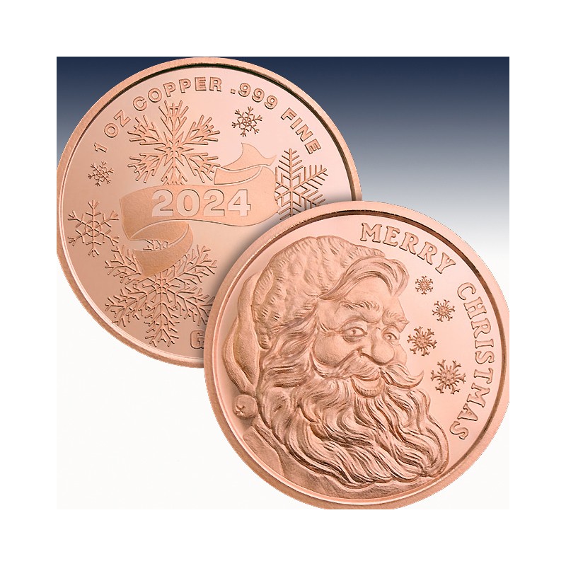1 x 1 Unze (oz) Copper Round Golden State Mint "Merry Christmas Santa 2024"