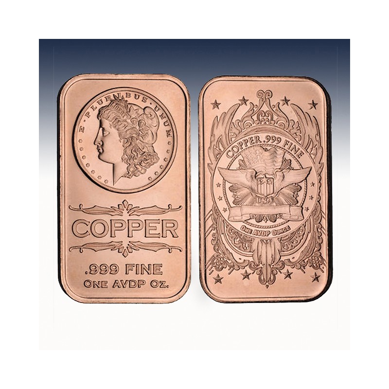 The 1 oz Morgan Copper Bar is now available in brand new condition from JM Bullion. Featuring the popular Morgan Silver Dollar design, each bar contains 1 AVDP oz of .999 fine copper. The Morgan Dollar’s popularity began its journey in 1878, and continued on a successful path until 1904. For 17 years, the Morgan Dollar lie dormant, only to regain its virtue in 1921. Today, the Morgan Dollar holds its place in America’s history as one of the most sought after coins among investors and coin collectors around the world.