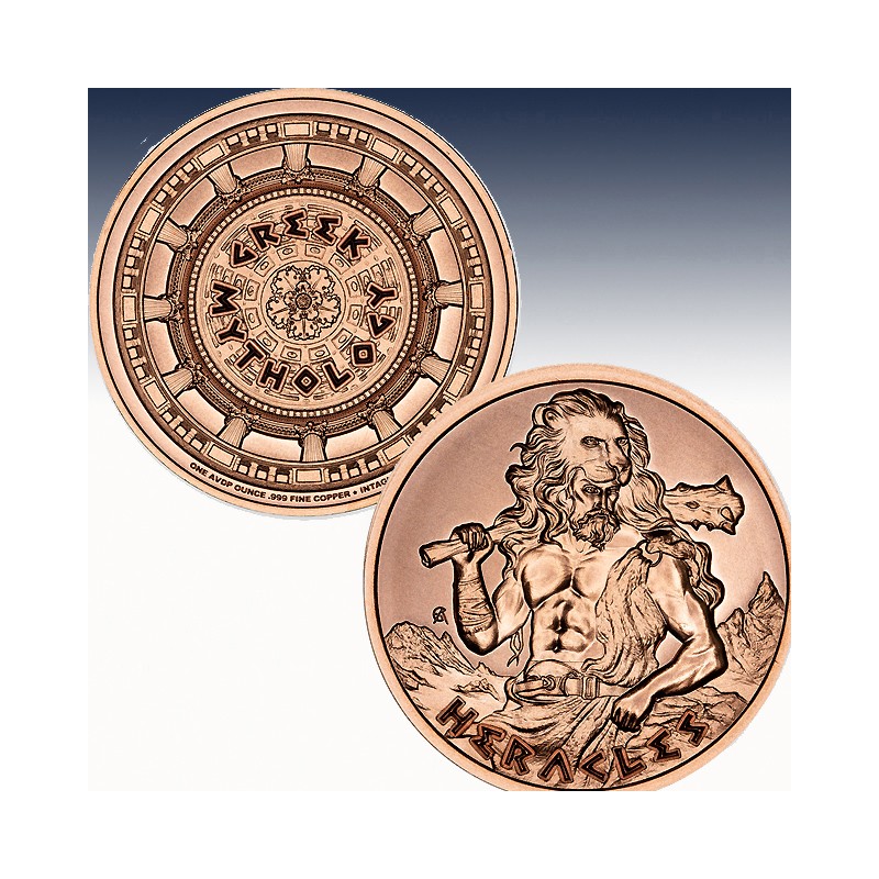 Celebrate the strength and heroism of ancient lore with the Heracles copper round, a bold entry in our Greek Mythology Series. Heracles, known to the Romans as Hercules, was the greatest of the Greek heroes, renowned for his unmatched strength and his legendary Twelve Labors.